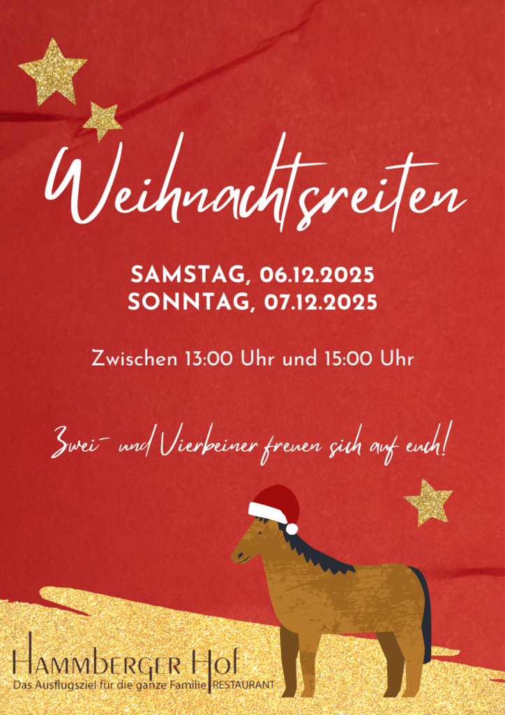 Am 06. und 07. Dezember 2025 lädt der Hammberger Hof wieder zum beliebten Weihnachtsreiten (Pony) ein!